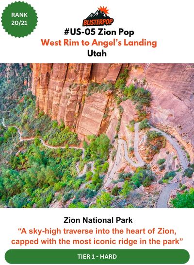 The Zion Pop combines the West Rim Traverse with the iconic Angels Landing finale — a full‑value desert‑canyon epic that moves from high mesas and ponderosa forests to sculpted sandstone corridors and knife‑edge exposure. You begin on the canyon floor, and end on the remote, elevated West Rim, ascending through some of the most cinematic terrain in the park before joining the main spine toward Angels Landing. The route delivers airy chains, thousand‑foot drop‑offs, and one of the most legendary viewpoints in the Southwest. It’s a route that blends solitude, scale, and adrenaline — a true Zion masterpiece.