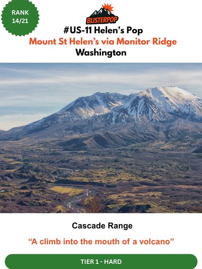 Mount St. Helens via the Monitor Ridge Route is a one‑of‑a‑kind volcanic ascent — a climb from deep forest to ash fields, boulder piles, and finally the razor‑sharp rim of an active crater. The route rises steadily through timberline before transitioning into hands‑on scrambling and loose pumice that tests grit and pacing. At the top, the world drops away into a steaming caldera with lava domes and blast‑zone views that feel almost otherworldly. It’s raw, cinematic, and unforgettable — a true Pacific Northwest epic.